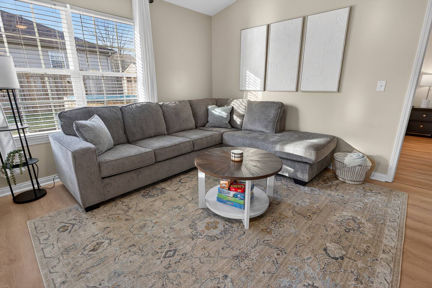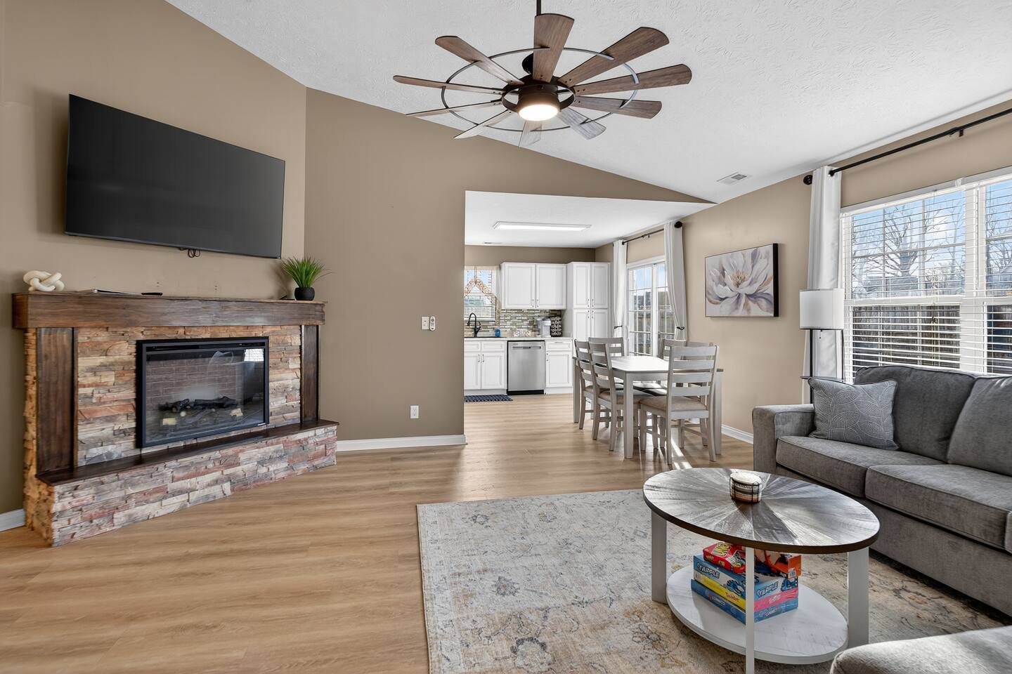 Welcome to Bluegrass Co, a spacious 4-bedroom, 2-bath home! This open-concept retreat is perfect for families and groups, featuring a bunk bed room, comfortable sofa bed, and plenty of space to relax. Enjoy a bright living area, fully equipped kitchen, and flexible sleeping arrangements. Conveniently located near shopping, dining, and local attractions, it’s the perfect home base for your stay!