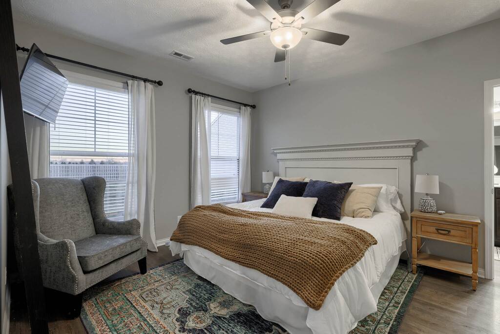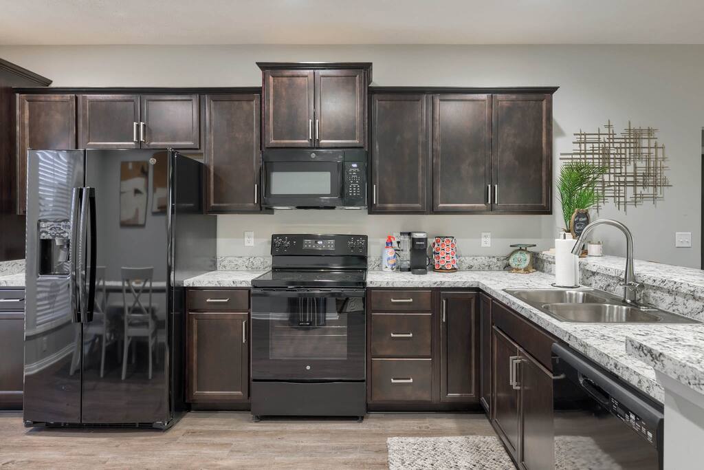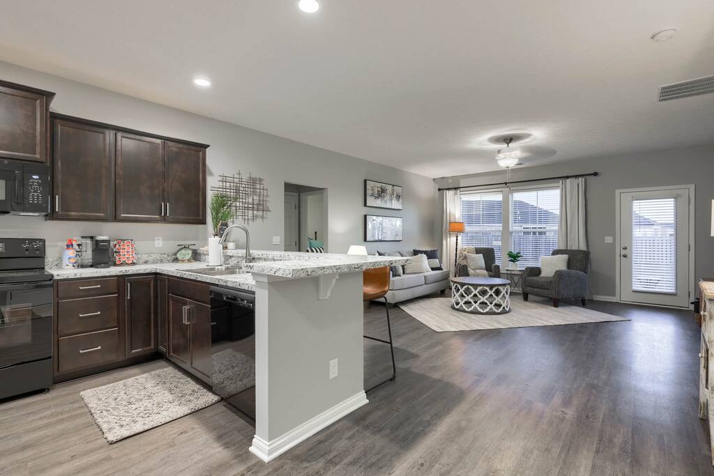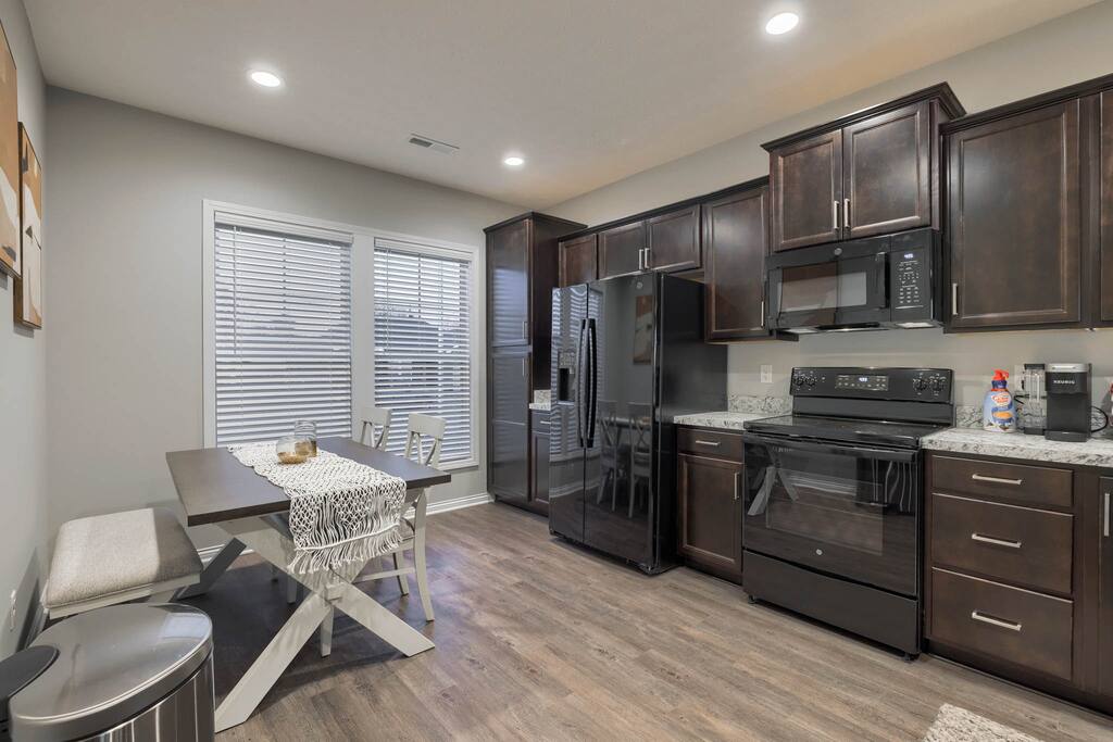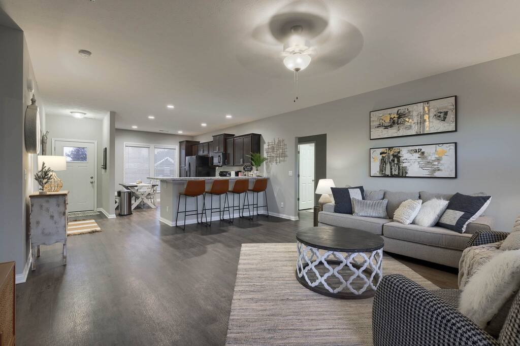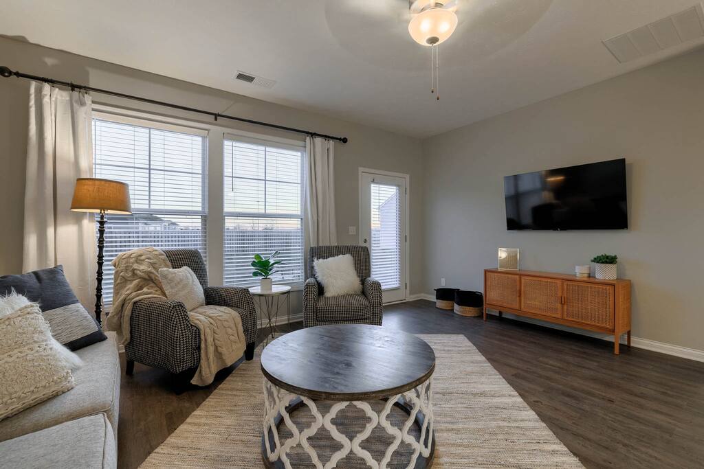You will be close to everything when you stay at this centrally-located three bedroom two bath home right off the bypass that is a short drive to anywhere in Owensboro, KY for any business travelers. This is a brand new construction home in Bluegrass Commons neighborhood! New furnishings and the home sleeps 6 comfortably. Split bedroom with an open concept perfect for families. Fully stocked kitchen with a keurig coffee station. Large backyard perfect for entertaining or just grilling.