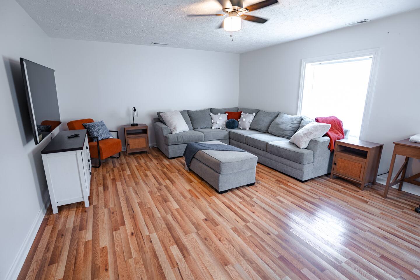 Cozy 2-bedroom, 1-bath retreat perfect for families, friends, or business travelers. Sleeps 4 comfortably with plush bedding. Fully equipped kitchen, spacious living area, high-speed WiFi, and Smart TV for entertainment. Fresh towels and toiletries provided. Free parking available. Conveniently located near restaurants, shopping, and local attractions. Experience comfort and convenience in a relaxing space. Book your stay today!